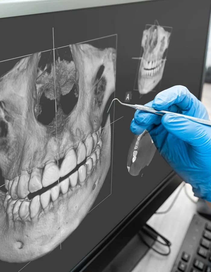 Three-dimensional imaging provides a comprehensive view of teeth, bone, and anatomy for precise diagnosis and treatment planning.