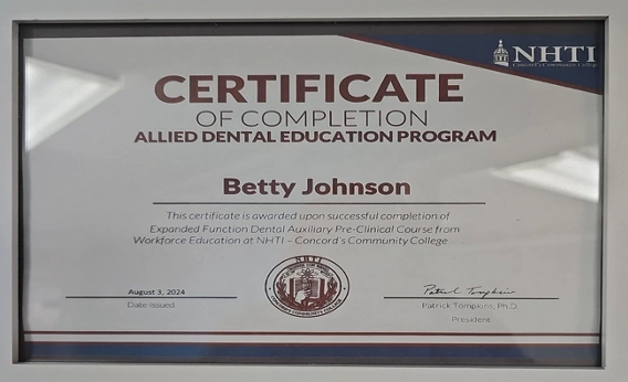 We are proud to celebrate Betty’s achievement in earning her Expanded Function Dental Assistant (EFDA) certification this year. Her commitment to advancing her skills reflects a deep dedication to patient care and clinical excellence. Betty’s growth strengthens our team and enhances the high-quality experience we strive to provide every day.
